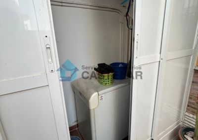 • En el patio se encuentra la caldera y el depósito de calefacción sobre mueble empotrado de aluminio.