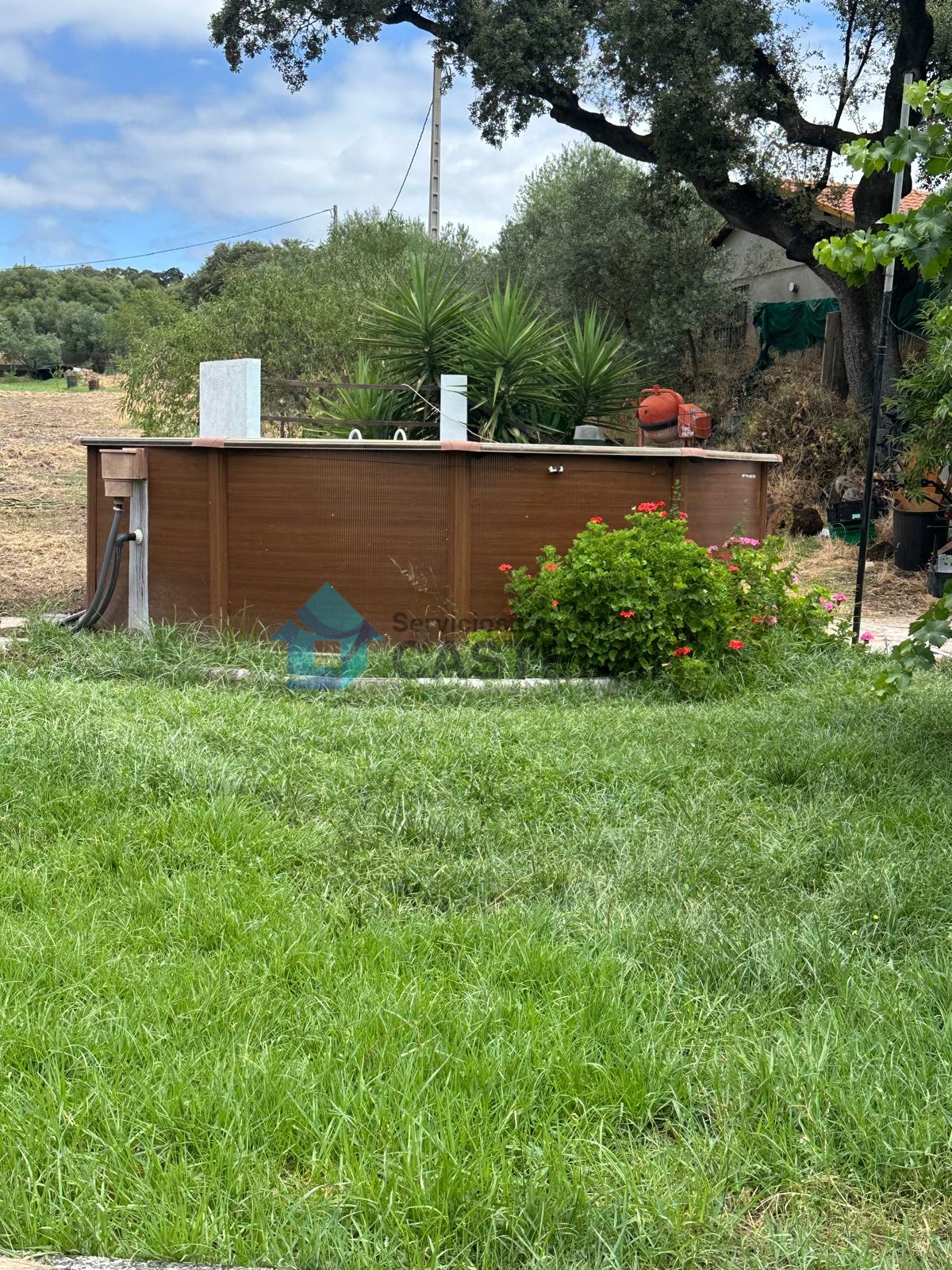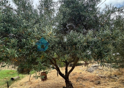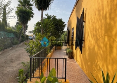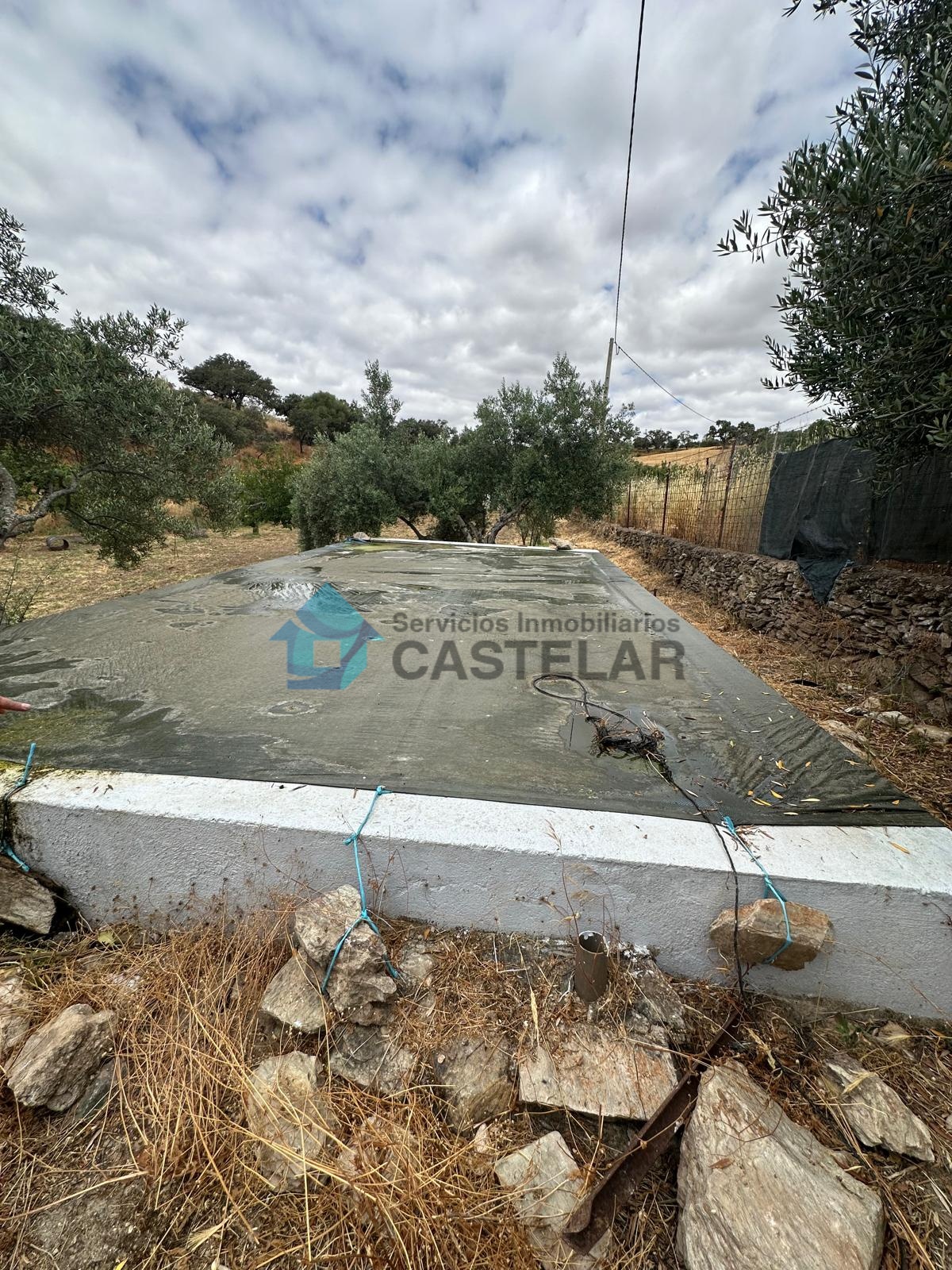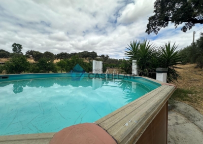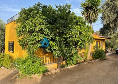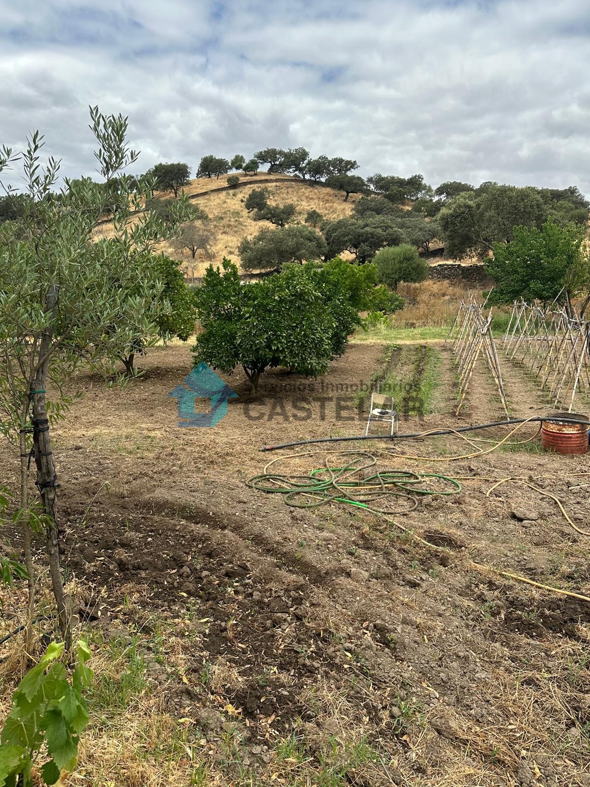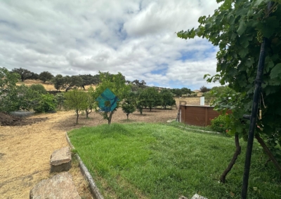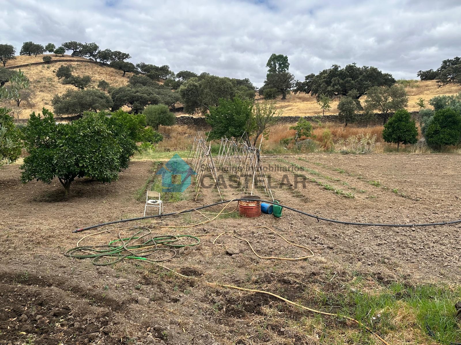 Además, la finca cuenta con una importante zona de cultivo en pleno rendimiento: aproximadamente 100 olivos, 15 naranjos, 12 higueras y unas 10 encinas. Para su mantenimiento, dispone de un pilón con capacidad de 50.000 litros destinado al riego, lo que garantiza la autosuficiencia de la finca en recursos hídricos.