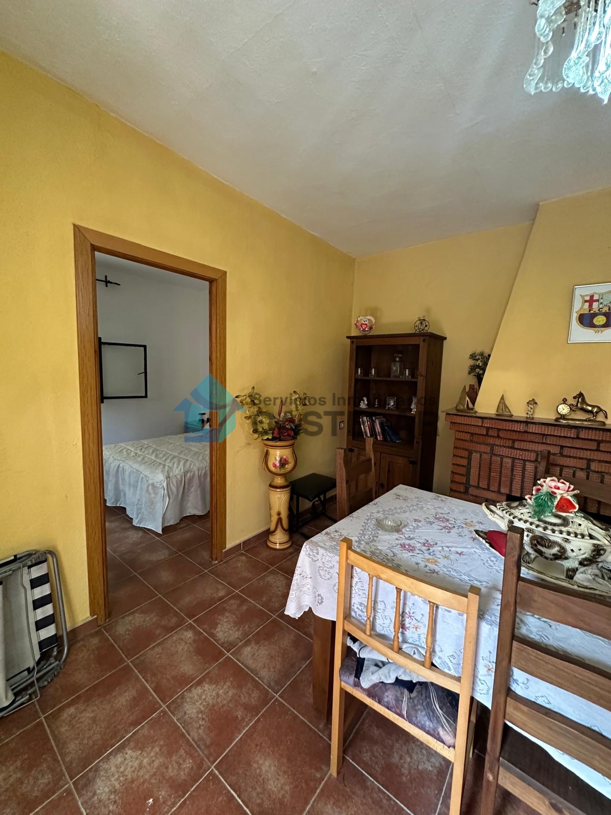 El chalet principal está distribuido en una acogedora cocina-comedor con chimenea, salón amplio y luminoso también con chimenea, un cuarto de baño completo, una habitación de matrimonio y una habitación individual, todo ello en una sola planta para mayor comodidad. En la parte superior, una terraza ofrece vistas despejadas al entorno natural, perfecta para relajarse al atardecer.