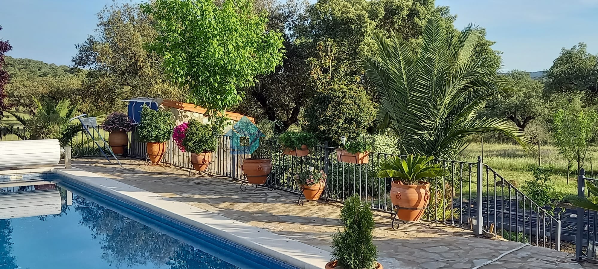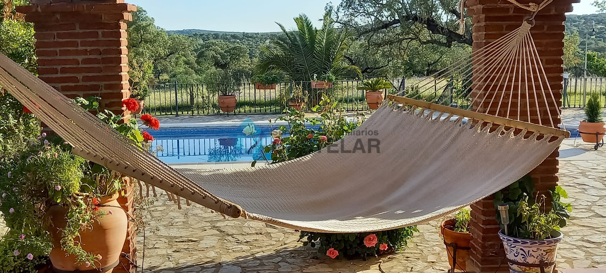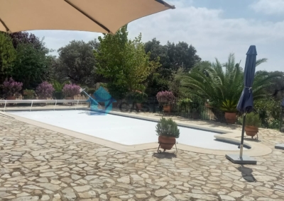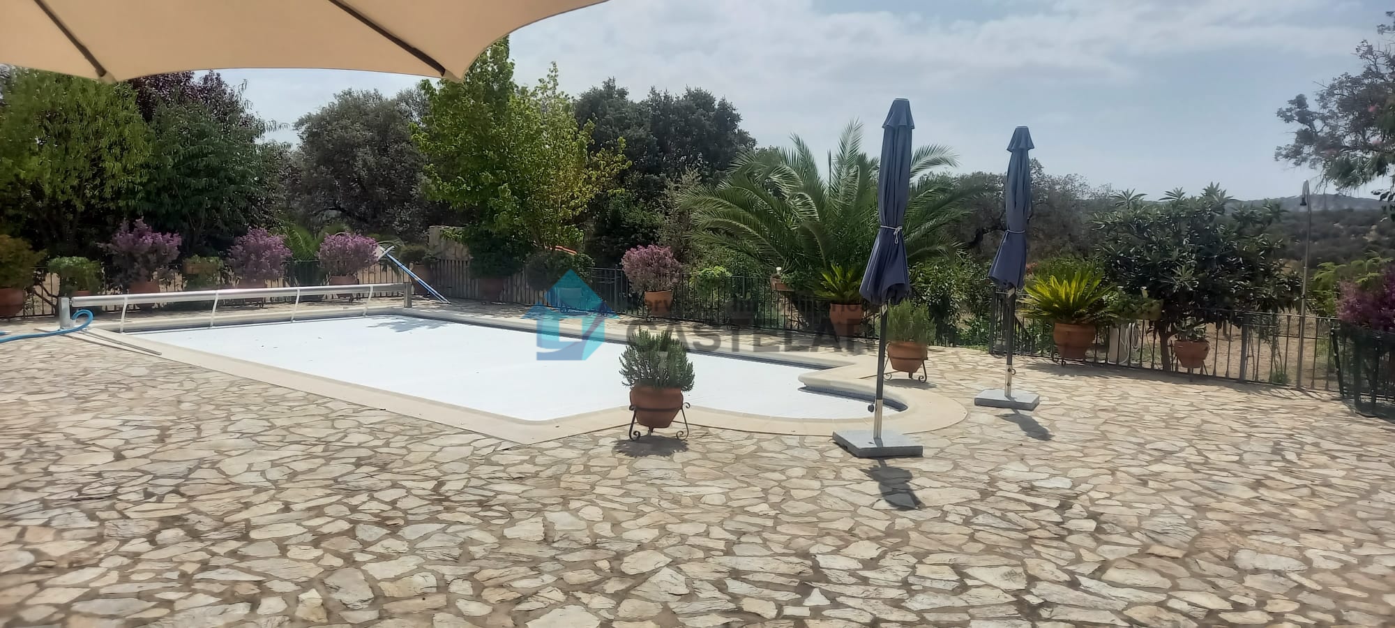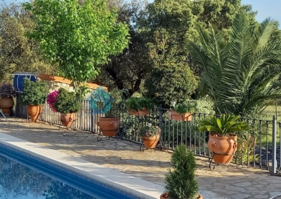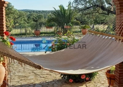 Desde la vivienda se accede directamente a un gran porche cubierto y a la zona de piscina, con una piscina de 10 x 5 metros, equipada con sistema de depuración, manta térmica y zona de barbacoa. Todo ello rodeado de un amplio jardín y terraza, ideal para el disfrute familiar y con vistas espectaculares a la dehesa. Un entorno sereno y privado, ideal para organizar eventos o simplemente desconectar del ruido y el estrés diario.