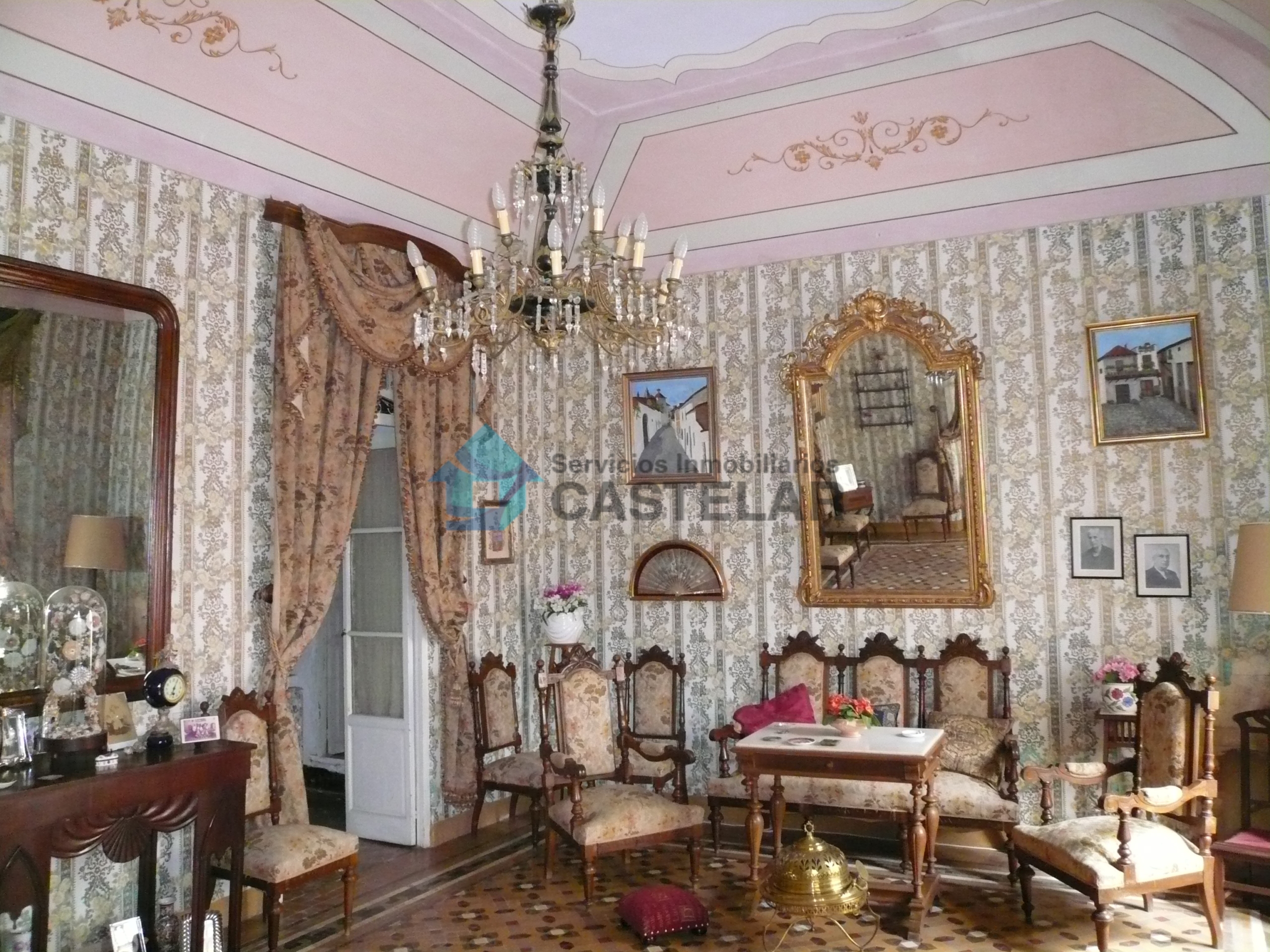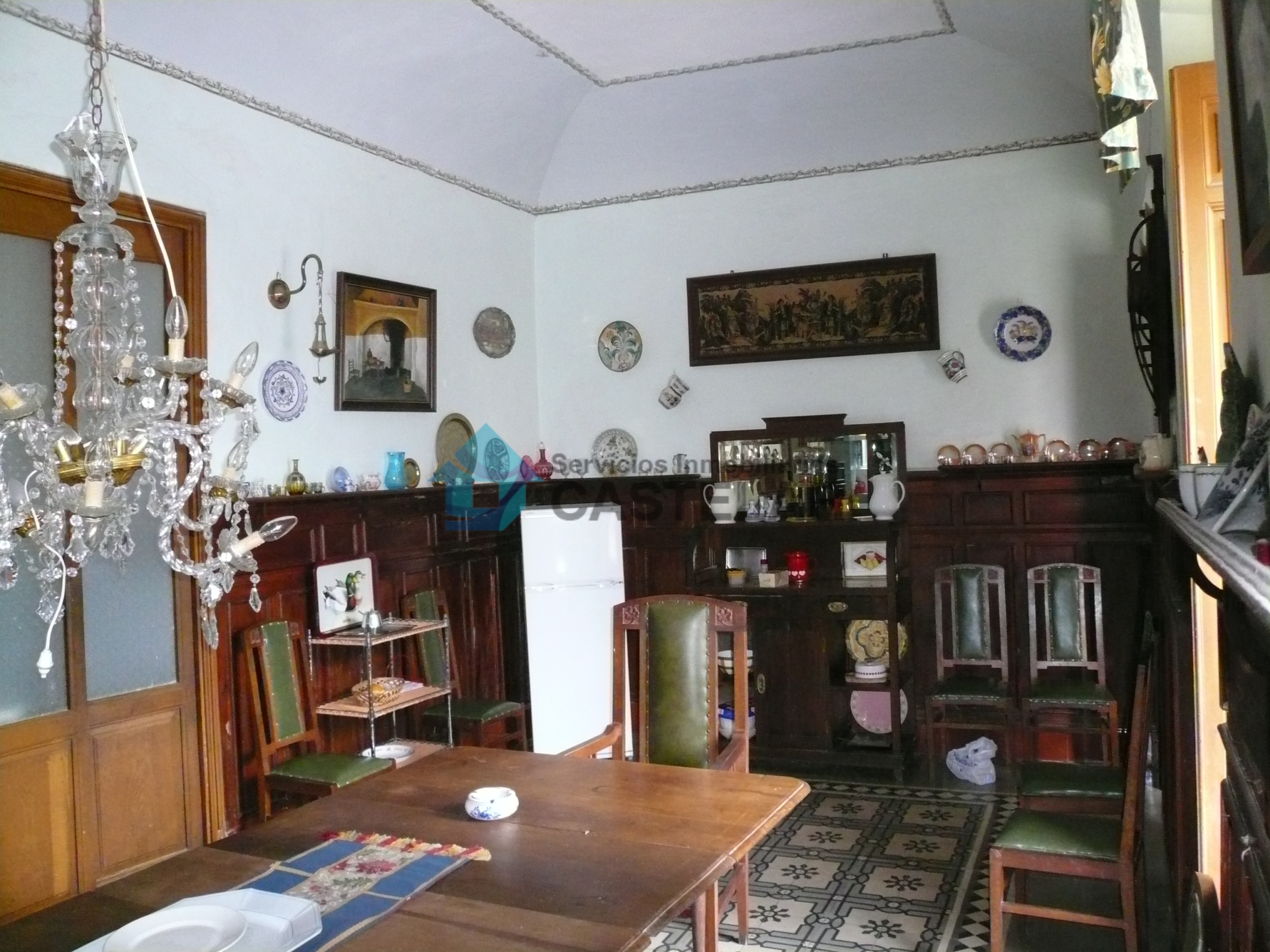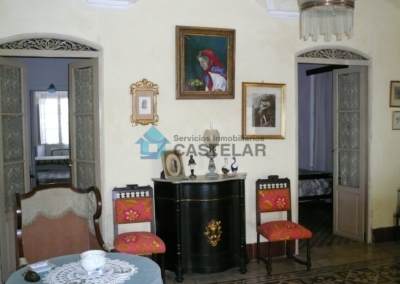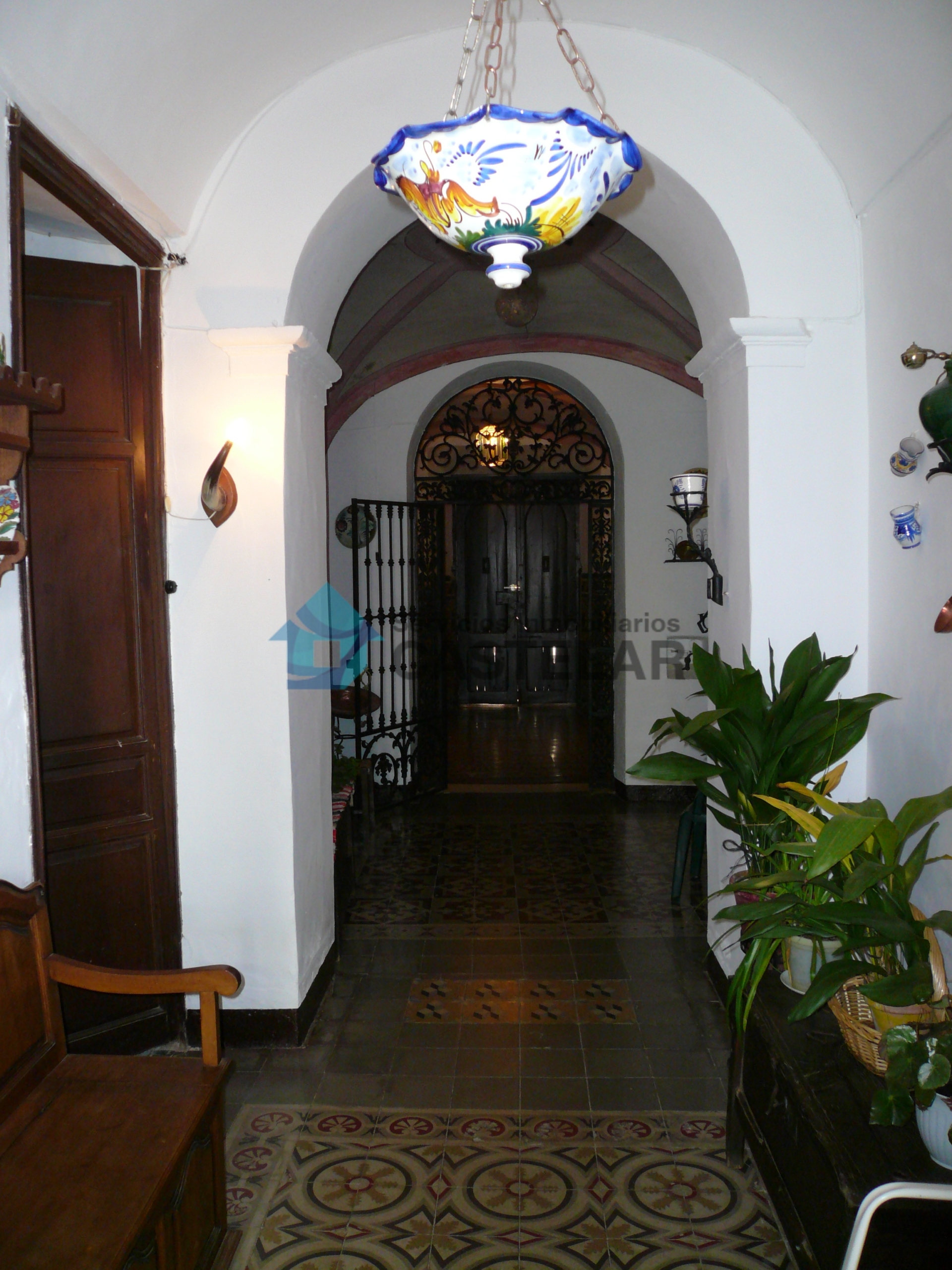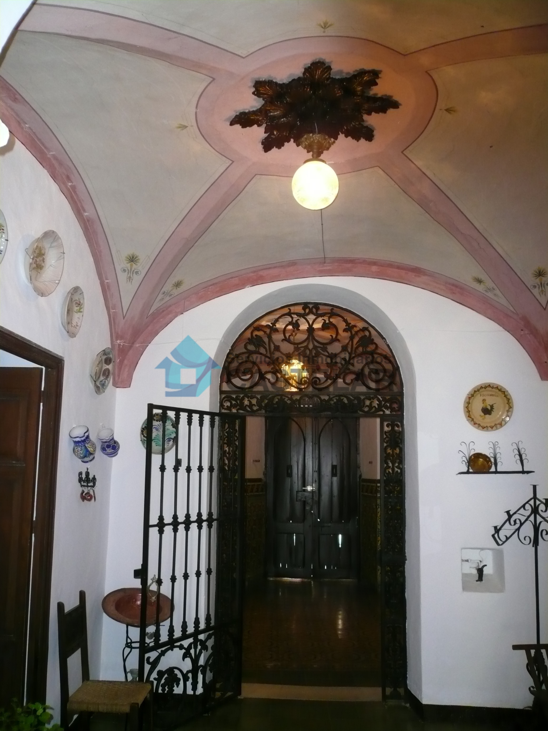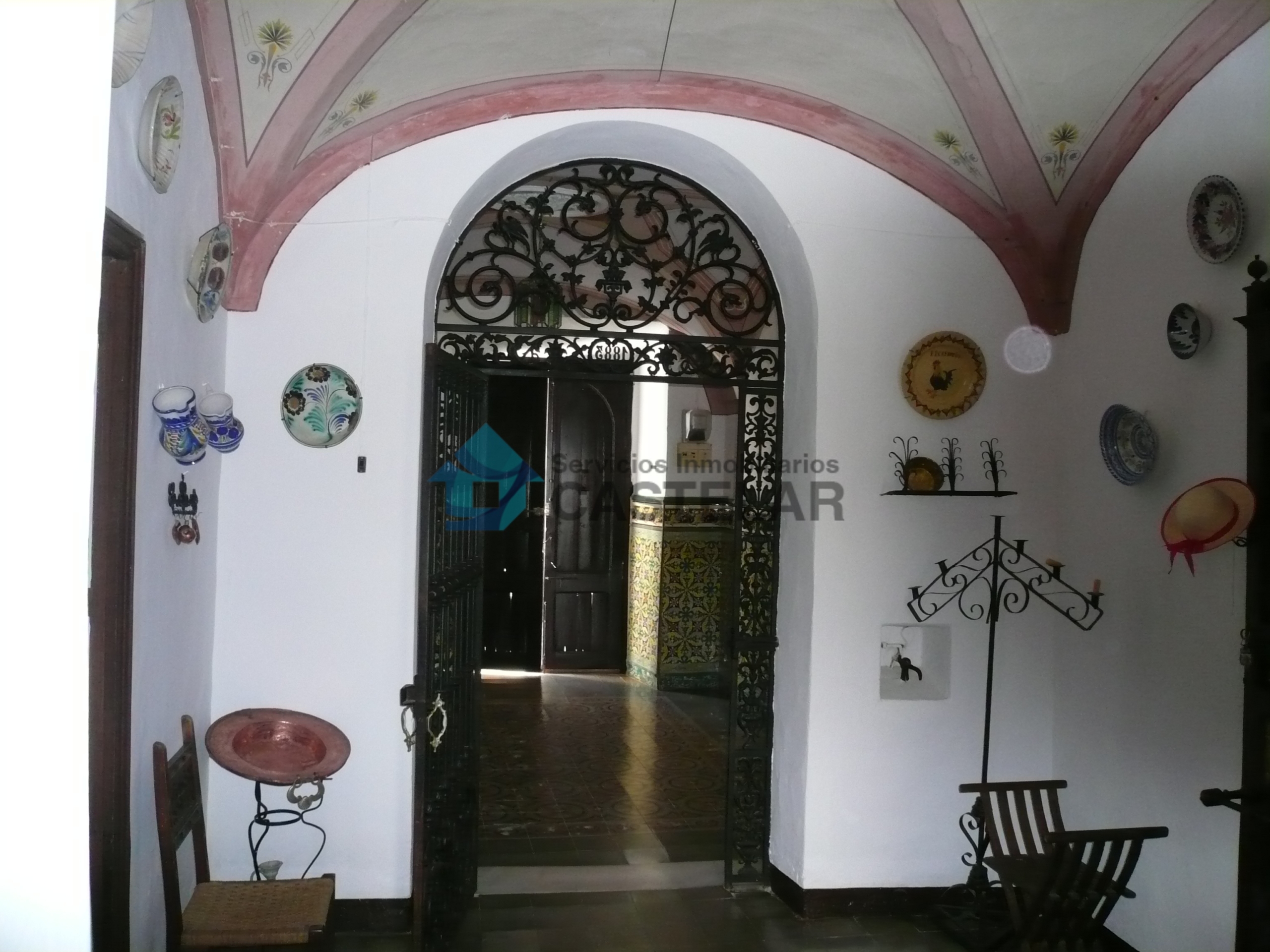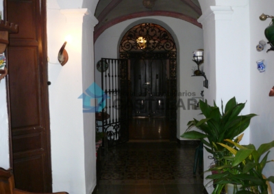 La vivienda cuenta con una amplia fachada principal compuesta por seis ventanas y siete balcones, lo que proporciona gran luminosidad y carácter a la propiedad. Dispone también de un acceso independiente para vehículos, que comunica directamente con los patios interiores y diversas estancias de la vivienda.