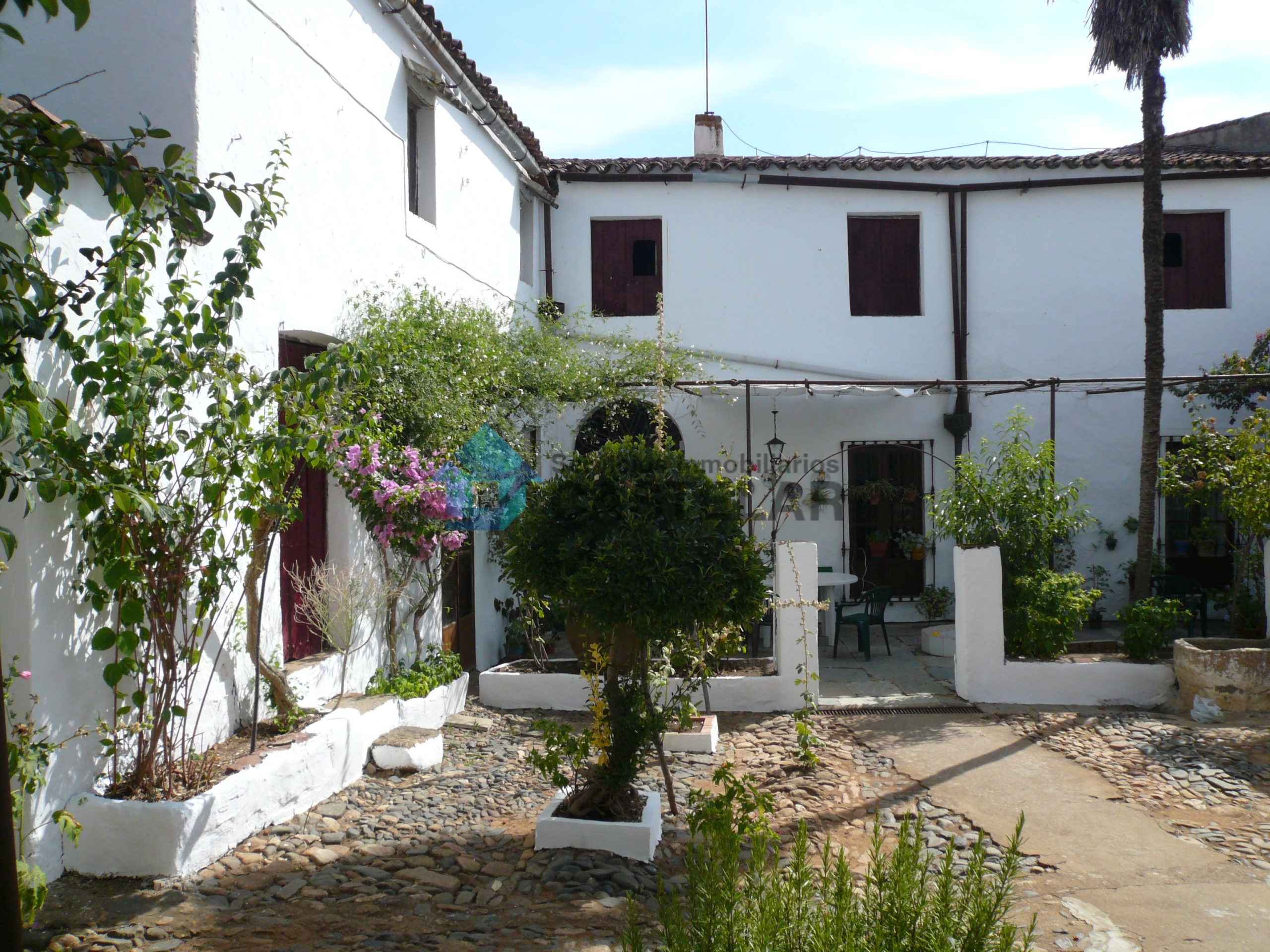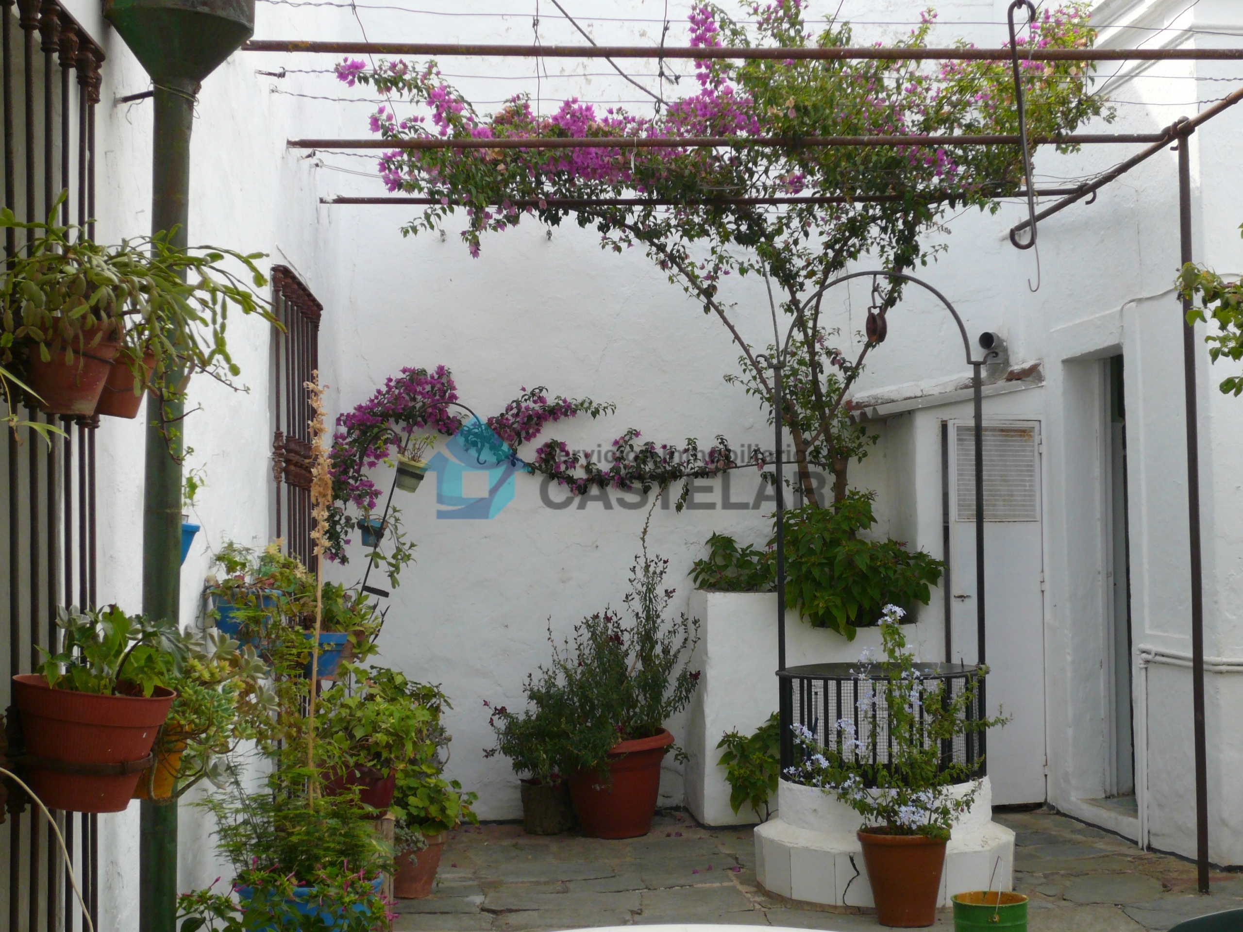 Antes de acceder al patio, encontramos una amplia terraza con pozo y un baño completo.